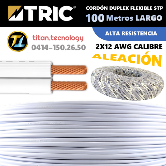 Cable Eléctrico Doble spt Calibre 2x12 Awg Blanco Aleación Tric