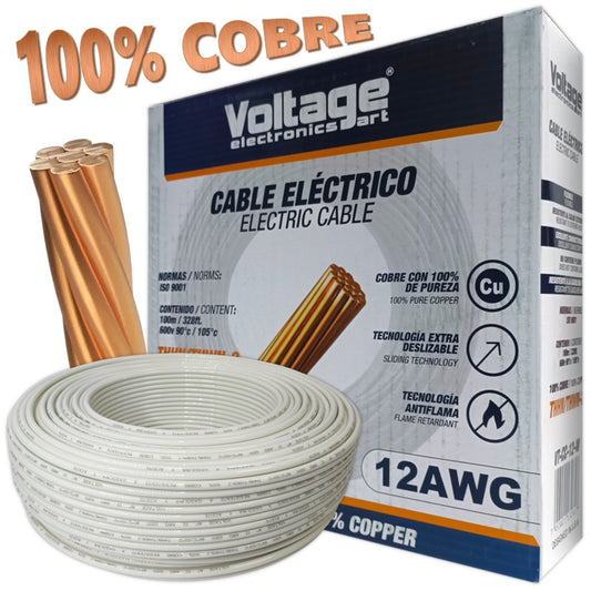 Cable Eléctrico 100% Cobre 12 AWG - Rollo 100 Metros / Voltage