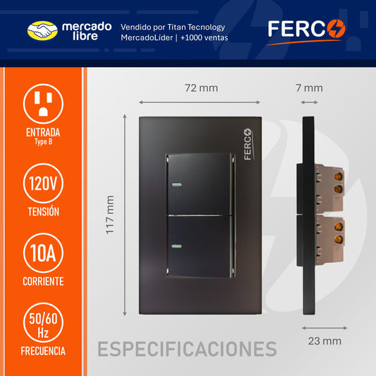 Interruptor / Apagador Doble Ferco Negro Luminiscente 120v