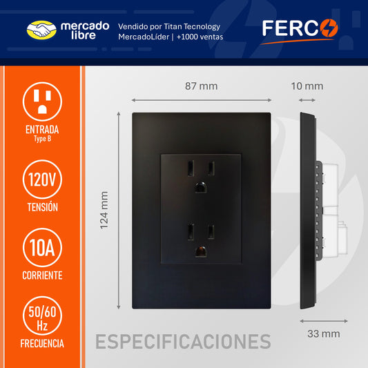 Toma Corriente Doble Ferco Polarizado Negro 120v / 15a