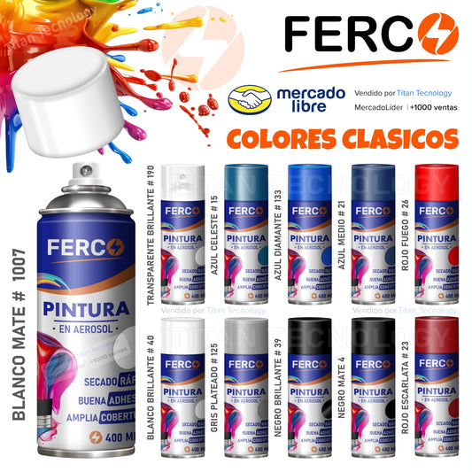 Pintura Ferco en Spray / Aerosol Acrílica Colores Clásicos 400cc