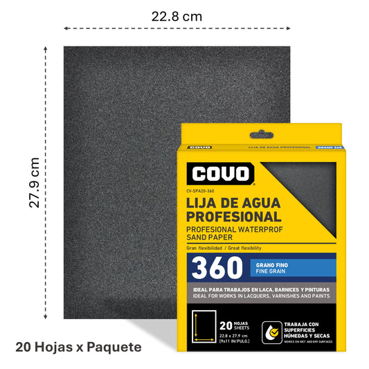 Paquete De Lija De Agua Covo Profesional 20 Unidades Varias Medidas